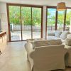 En el interior de la casa, en el ala derecha, le espera una sala de estar muy amplia y decorada con mucho gusto, con cocina nueva integrada con isla y zona de comedor; gracias a las grandes puertas acristaladas hacia la terraza, toda la estancia está agradablemente bañada de luz. Una chimenea proporciona la temperatura adecuada en los días fríos. En el otro ala hay en total tres dormitorios y dos baños; el dormitorio principal tiene un baño abierto en suite y además acceso al exterior hacia la terraza. Además hay una amplia lavandería.