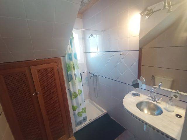 Primera planta: 1 dormitorio con dos camas individuales y 1 dormitorio doble con armarios empotrados y 1 baño con bañera/ducha.