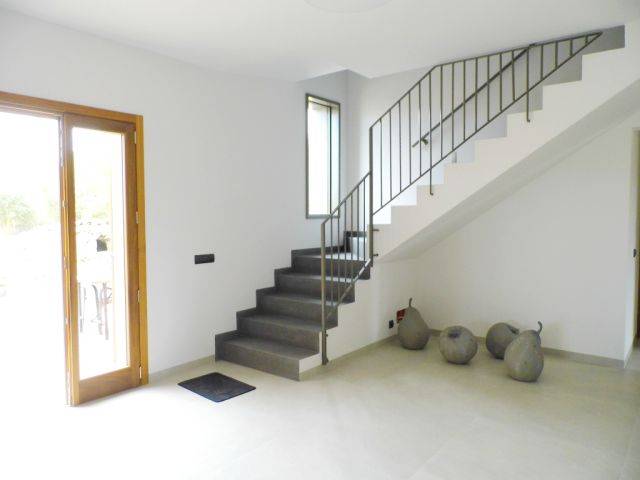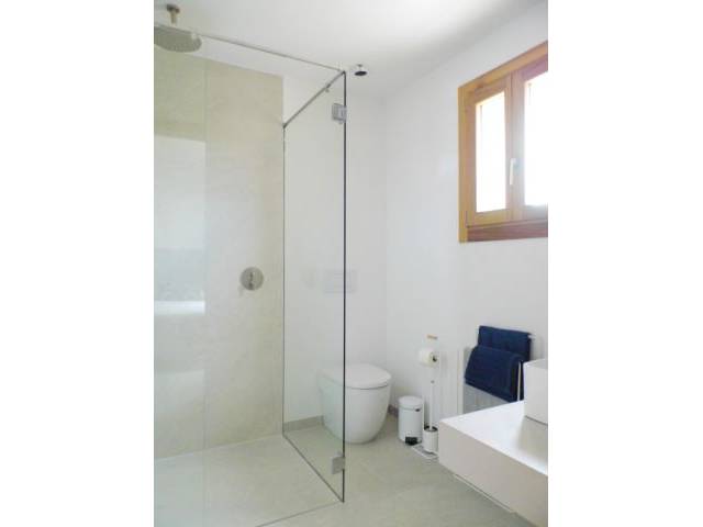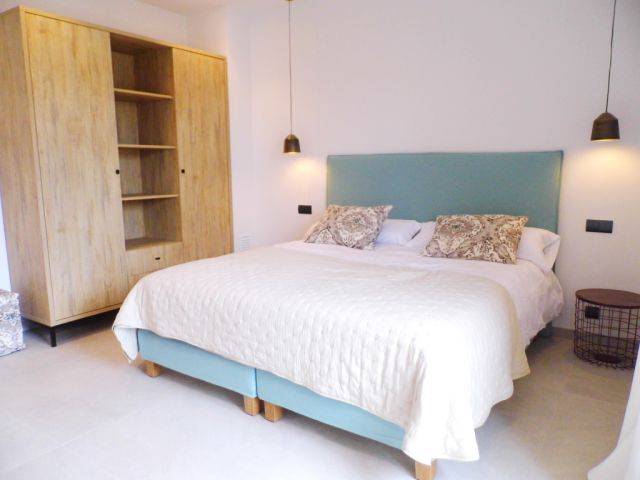 Características: Suelos de baldosas grandes y claras, sistema de alarma, doble acristalamiento, escotillas de madera mallorquina, TV vía satélite y conexiones de canales españoles en el salón, el comedor y todas las habitaciones, línea de internet puede ser instalada por el propietario, aire acondicionado central en todas las habitaciones (frío – calor) agua de la ciudad, agua de pozo propia, agua caliente a través de caldera eléctrica, sistema de descalcificación. Todas las habitaciones tienen su propio baño en suite. Moderno y como nuevo amueblado.