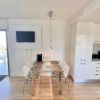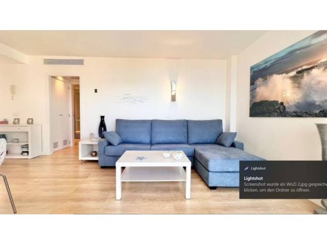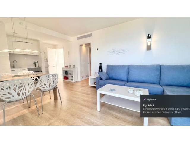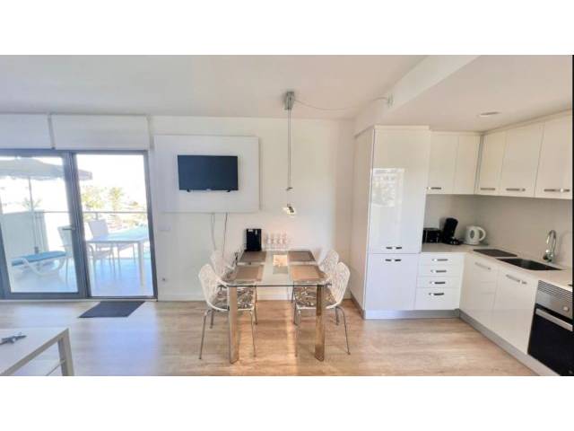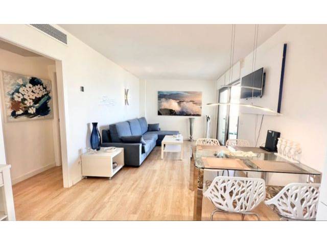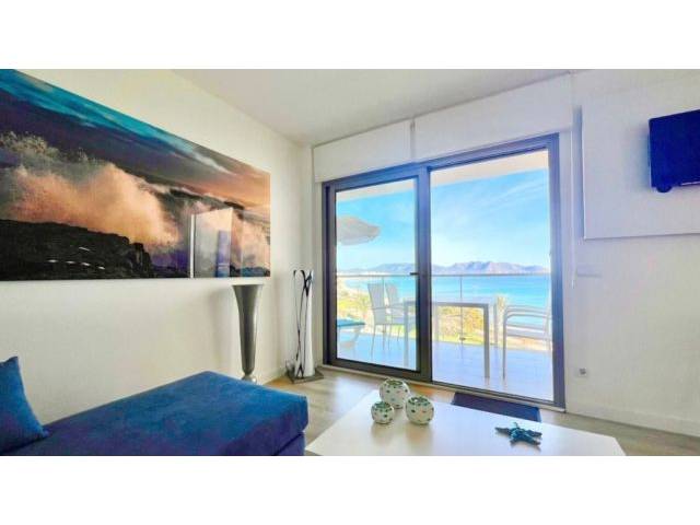Salón-comedor: cómodo sofá, TV vía satélite, mesa de comedor para 4 personas y con vistas al mar
