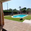 La parcela mide 820 m2 y cuenta con césped artificial alrededor de la piscina de 8 x 4 m – convertible a sal o clor, ducha exterior – y aseo, 4 tumbonas, lavadoras – baño exterior y otro pequeño trastero, en la zona trasera hay trasteros con cerradura de aprox. 30 m2, barbacoa de carbón, terraza cubierta de aprox. 40 m2 con muchas opciones de asientos orientados al sur. Parking frente a la casa.