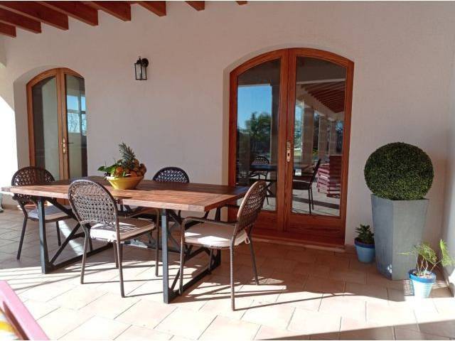 Características: Baldosas marrones, doble acristalamiento, persianas de aluminio y madera, 5 x AC (frío – calor) en el salón, el comedor y todas las habitaciones, calefacción central de gasoil, TV vía satélite y canales españoles, Internet Wi-Fi de 3 + 1 MB, electricidad de Gesa - combinada con paneles solares, cisternas y agua de pozo para el jardín, agua caliente a través de gasoil de calefacción o paneles solares. 100% amueblado en un estilo moderno y étnico. A petición, también se puede solicitar cuna y silla.