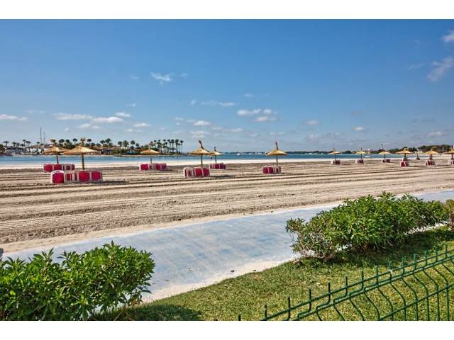 Bonito piso en primera planta en un bonito y atractivo complejo con zona ajardinada y piscina, a 400 m del club náutico, restaurantes, tiendas y ocio. Este piso dispone de 2 dormitorios dobles con armarios empotrados, baño, aseo, cocina amueblada, salón comedor con acceso a la terraza de 6 m2 con vistas a la playa, orientación sureste, muy soleado, piscina comunitaria, jardines y parking en un complejo muy bien cuidado. Aire acondicionado, ascensor, se podría solicitar licencia de alquiler, cuando de nuevo se podrán solicitar.