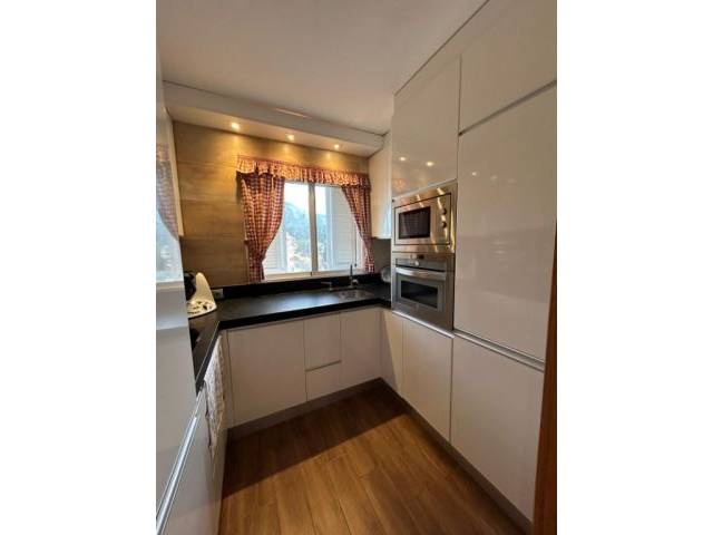 Cocina funcional, bien equipada, con detalles mediterráneos