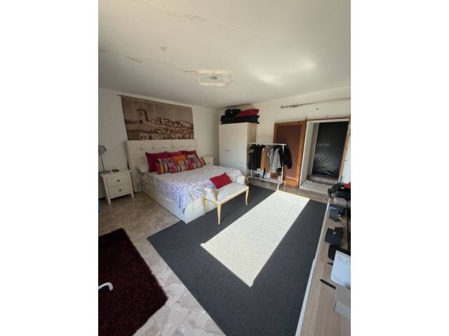 Está empezada la obra, la mitad del tejado es nuevo, con una habitación casi acabada habiendo dejado las vigas vistas para concordar así con la decoración de la planta inferior …..