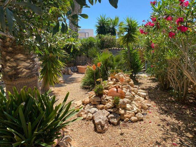 La casa está enmarcada por un jardín de ensueño con palmeras, limoneros, un higuera, cipreses y otras plantas.