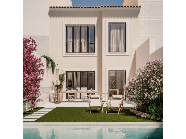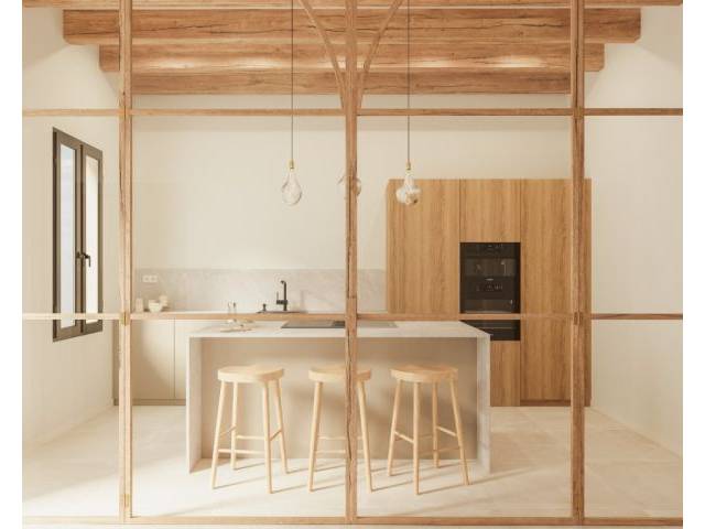 En la planta baja, una preciosa cocina abierta se integra de forma fluida con el comedor, creando un espacio ideal para compartir momentos inolvidables. Un aseo de cortesía, una práctica despensa y un acogedor salón con acceso directo al patio completan este nivel. Al cruzar las puertas hacia el exterior, el jardín te regala un rincón de ensueño: una espectacular piscina rodeada de calma, perfecta para refrescarse en los días más cálidos o disfrutar de mágicas veladas con amigos y familia bajo el cielo estrellado de Mallorca.