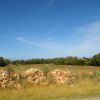 Tiene una forma angular y se divide en 3 parcelas (dos de ellas están bordeadas por árboles) y la tercera parcela está en la parte posterior y está bordeada por muro de piedra y una parcela boscosa.