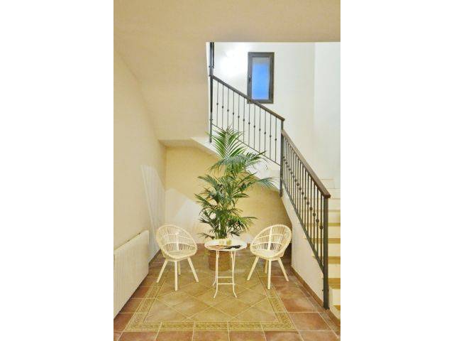 Equipamiento: Todos los dormitorios están equipados con armarios empotrados, doble acristalamiento, imponente puerta de entrada de madera, calefacción central de gasoil, energía solar con un equipamiento de alta calidad, muchas ventanas y puertas, antena de televisión española, sistema fotovoltaico, baldosas ligeras, suelos de parquet en los dormitorios y baldosas negras en la cocina. Internet a través de Wifi, agua caliente a través de calefacción central de gasoil, sistema de alarma, tanque de agua de 27.000 l (debe entregarse si no llueve), persas ALU marrones, inventario moderno. Antena SAT, línea de internet por radio.