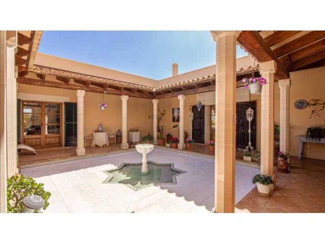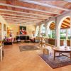 Al acceder por la imponente puerta principal de madera, se abre un patio que recuerda a la belleza de Italia, adornado con una fuente majestuosa. Desde este encantador espacio, puedes dirigirte a diversas áreas de la casa: el salón principal, la casa de invitados o zona privada para los anfitriones, y el hall que conecta con las habitaciones de la planta baja, la cocina y las escaleras hacia el primer piso.