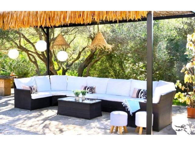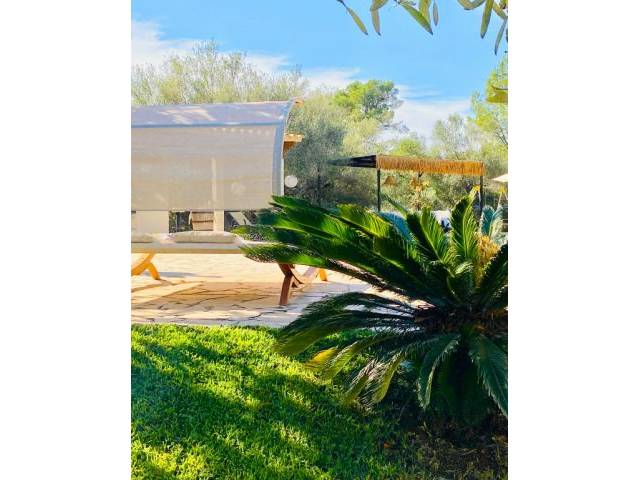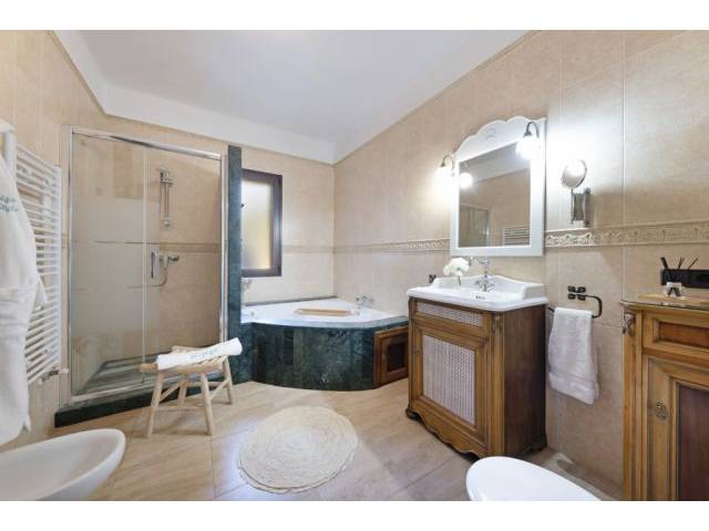 En el exterior, la finca despliega su máximo encanto: una espectacular piscina de agua salada, de aproximadamente 100 m², junto a una relajante bañera de hidromasaje, invitan al descanso más absoluto. Además, la zona de barbacoa y chill-out convierte cada día en una celebración del estilo de vida mediterráneo.