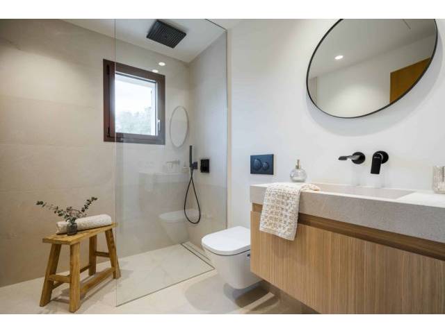 Construida con materiales de primera calidad, la villa está diseñada para maximizar la luz natural, con amplios ventanales en la planta baja que conectan el interior con el jardín y la piscina.