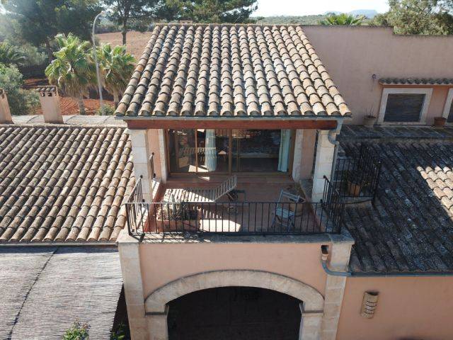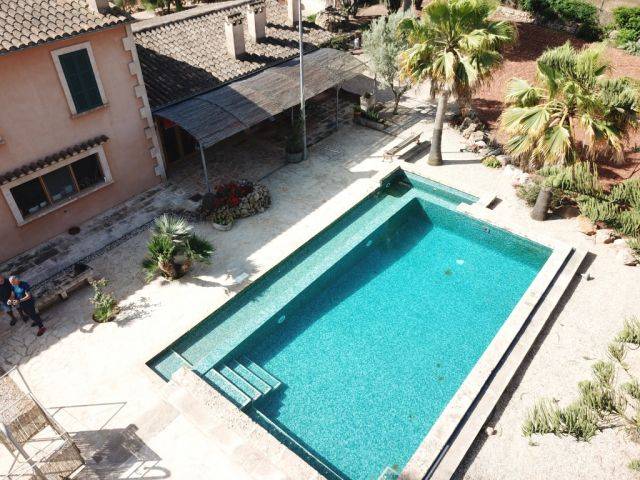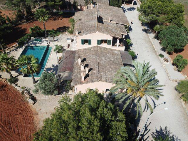 Está situado lejos de ruidos de tráfico en un contorno del campo Mallorquín auténtico, con vistas muy despejadas.