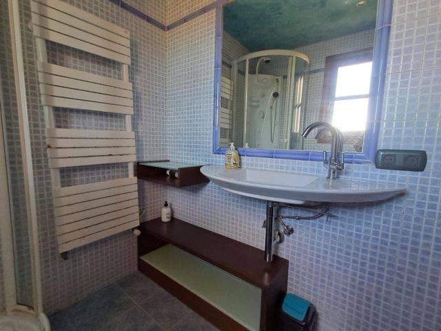 La primera planta tiene 1 dormitorio adicional con acceso a la terraza, zona abierta de vestidor de aprox. 6 m, y 1 baño — también con ducha de hidromasaje y bañera.