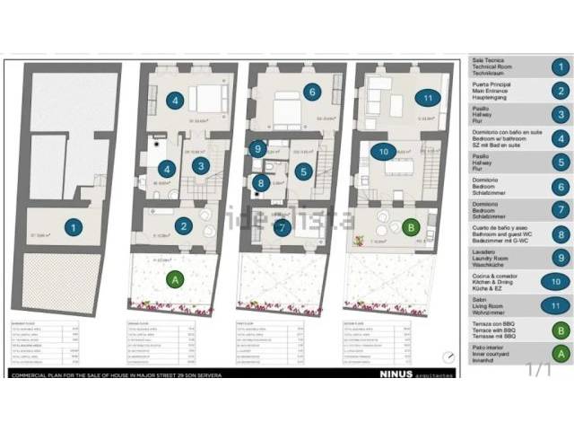 Im Erdgeschoss verfügt die Immobilie über einen Zugang von beiden Straßen und Platz für ein kleines Auto. Dieser doppelte Zugang bietet eine große Vielseitigkeit bei der Festlegung der endgültigen Bestimmung, die dem ersten Stock gegeben werden soll (Schlafzimmer mit Bad, Empfangsraum, Büro usw.). Ebenfalls auf dieser Etage befindet sich der Zugang zur Waschküche mit Wärmepumpe, Wasseraufbereitung, 1000-Liter-Wassertank und anderen Ausstattungen.