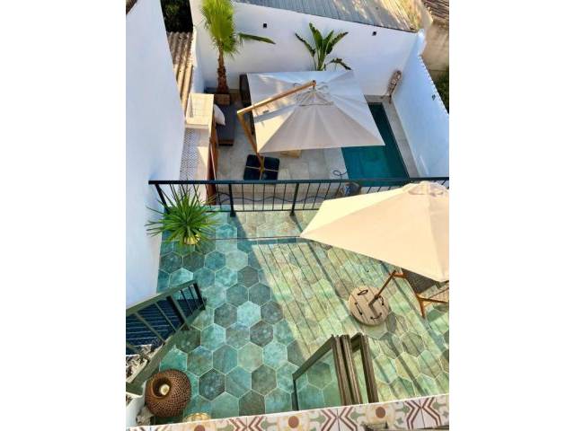El exterior en la planta baja ofrece una terraza privada con piscina (4 x 2 m) – un refugio protegido en el corazón del casco antiguo.