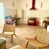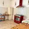 Amplia cocina abierta con chimenea de leña