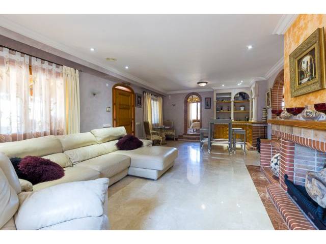 En la planta baja se encuentra un amplio y luminoso salón-comedor con chimenea y con acceso a una preciosa terraza acristalada que cuenta con todas las comodidades para celebrar cualquier tipo de comida o cena, una cocina independiente, amueblada y completamente equipada con acceso a otra de las terrazas de la propiedad, un dormitorio doble, un baño completo con plato de ducha, un amplio garaje y una coladuria.