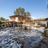 La zona de los jardines dispone además de la magnifica piscina de una zona de mini bar-barbacoa, un pequeño gallinero y una pista de tenis