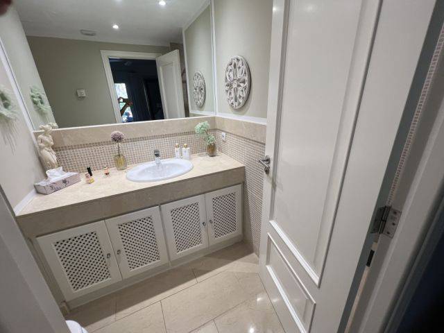 2 dormitorios y 2 baños con suelo radiante, uno de ellos en suite con acceso directo a la terraza (hay 2 terrazas en las que puede disfrutar del sol de la mañana y de la tarde en un ambiente mediterráneo) completan el apartamento de buen gusto y son una joya muy codiciada incluso en esta urbanización.