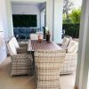 La zona de terraza totalmente renovada forma una gran unidad entre el interior y el exterior. El sistema de toldos eléctrico ofrece una protección solar óptima para toda la zona de la terraza, especialmente para los meses de verano.