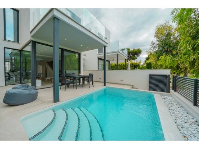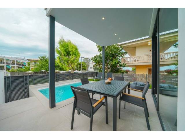 Chalet pareado en Playa de Alcudia. La vivienda tiene jardín y piscina y algo de vistas al mar. Su ubicación esta a tan sólo unos pasos de la playa. Lo convierten en un lugar idóneo donde tener su su primera vivienda o pasar sus vacaciones, en una de las mejores playas del mundo, la Playa de Alcudia. La casa dispone de 120 metros, más 70 metros de sótano y aparcamiento en la planta baja. La parcela mide 240 metros, y la vivienda dispone de tres dormitorios y tres baños, dos de ellos en la planta primera, y uno en la planta baja, además de cocina, salón comedor y dos terrazas con vistas al mar.