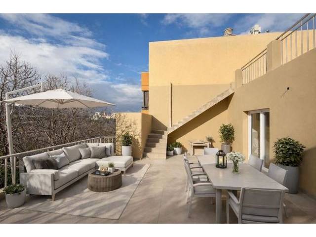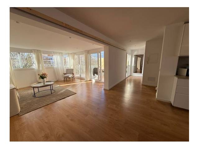 El piso fue completamente reformado en 2025–2026 y hoy se presenta con los más modernos estándares técnicos y de diseño. Se renovaron todos los oficios: suelos, instalaciones eléctricas, ventanas, puertas, baños, cocina y toda la instalación técnica. El resultado es un hogar de alta calidad y con estilo, con una arquitectura clara y una planta muy abierta y luminosa. En aproximadamente 95 m² de superficie habitable se distribuyen tres dormitorios y dos baños. Un dormitorio dispone de baño en-suite. Otro dormitorio está diseñado de forma flexible y puede separarse del área de estar mediante puertas correderas de alta calidad. De este modo se crea, a elección, un amplio espacio de estar con carácter de loft o un dormitorio adicional y completamente funcional. Un tercer dormitorio, más pequeño, completa la oferta de espacio. Además, hay un baño separado con moderna ducha de cristal y WC. El salón-comedor constituye el corazón del piso y convence por su amplitud, la disposición abierta y la conexión directa con las terrazas en la azotea.