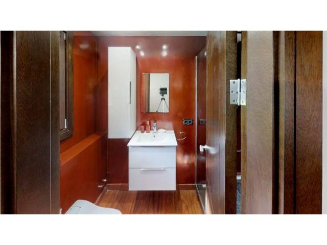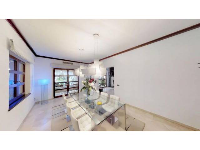 – todos los suelos son de marmol embejecido en interiores y garage de marfil tratados con ácidos al igual que en terrazas de rojo alicante con el mismo tratamiento, en planta piso los suselos son de madera maciza de 2.5 cms (merbau) de una sola pieza, las escaleras son de la misma madera y barandilla de acero inoxidable, los suelos del gimnasio son también de madera.