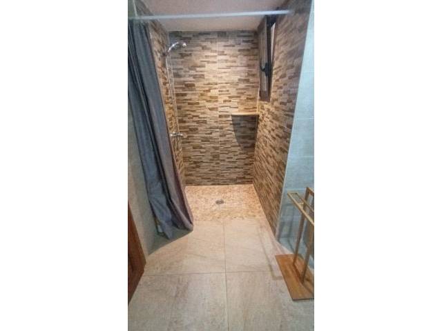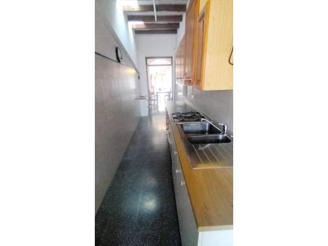 Planta baja: Zona de entrada con arco de medio punto, seguida de una zona de comedor con trastero y detrás de ella la cocina alargada que da paso al patio interior. 1 dormitorio y 1 baño nuevo en suite con ducha y ventana.