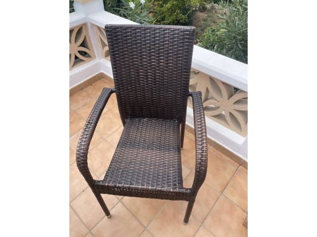 Busco entre una y cuatro sillas de jardín. Buen estado. El acabado trenzado parece tejido de ratán, pero es de plástico.