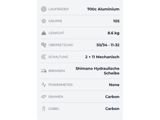 Cambio mecánico: Shimano 105 2x11 Relación: 50/34 · 11-32