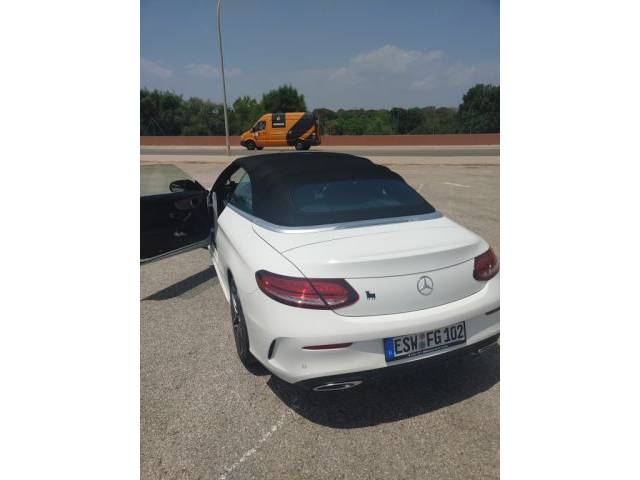 DB C180 Cabrio AMG, techo blanco/negro, primera matriculación 03.02.2020, aprox. 65.000 km, gasolina, automático, 9 velocidades, 1.595 cc, 156 CV, estado impecable, 4 neumáticos nuevos, TÜV 07/27, última inspección a los 61.782 km, asientos de cuero, techo automático, calefacción en asientos delanteros, reposacabezas con calefacción, paso de carga posible, los asientos traseros pueden abatirse de forma individual, aparcamiento automático, control de distancia, control de crucero, cámara 360, navegador, manos libres, volante multifunción, ajuste eléctrico de asientos, sistema de sonido