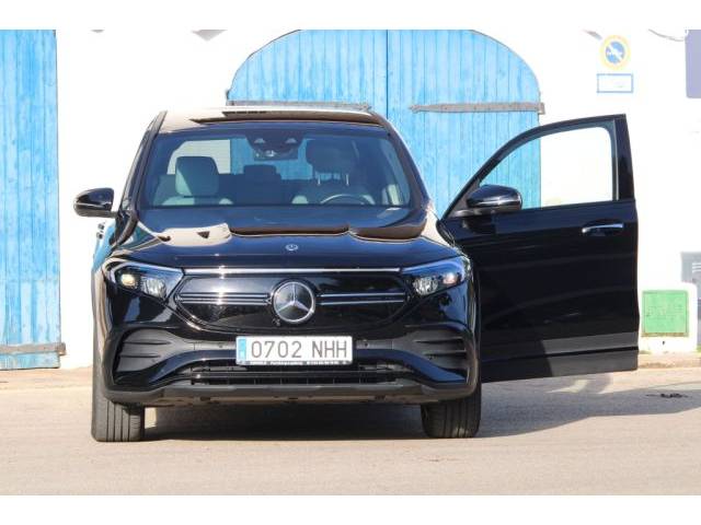 EQB 350 4MATIC AMG Line negro es una versión con equipamiento deportivo de la EQB totalmente eléctrica, que combina la tracción total (4MATIC) con el paquete AMG Line, que incluye interior deportivo (micropana/Artico, pedales de aluminio) y exterior (acentos negros, diseño AMG).