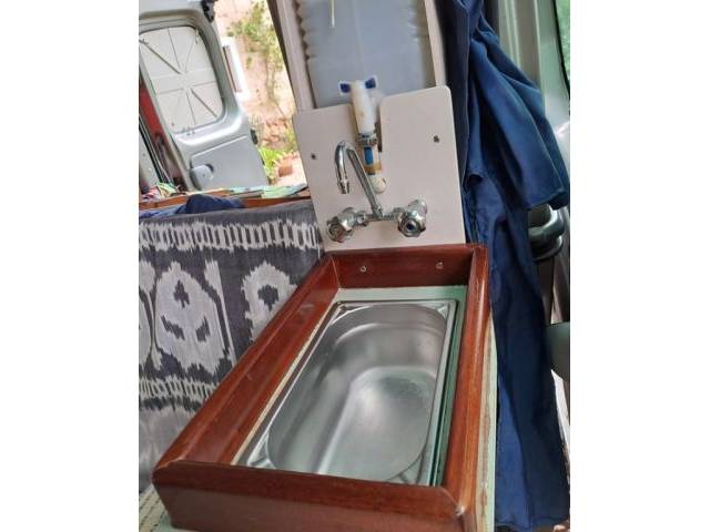 Pequeño lavabo con depósito de agua y tanque de aguas residuales