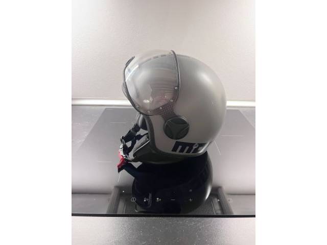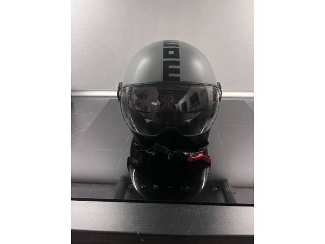 Casco tipo jet abierto gris de Momo Design, talla XL. Fecha de fabricación 09/24.