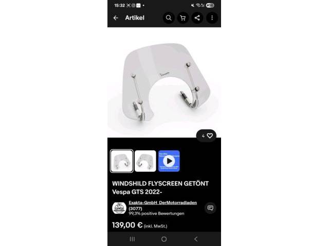 Ofrezco un parabrisas original Vespa GTS 300, como se ve en las fotos. Tiene marcas de uso, pero se pueden quitar con pocos medios. Si estás interesado, ¡contáctame!
