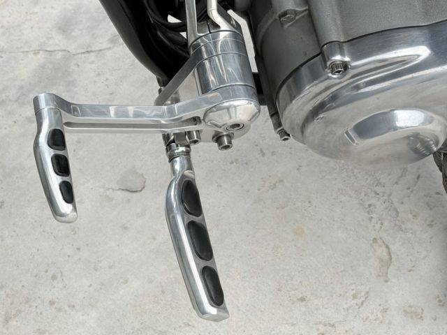 El ancho neumático trasero 230, el soporte de matrícula lateral y el filtro de aire deportivo le dan a la máquina un aspecto custom clásico y minimalista.