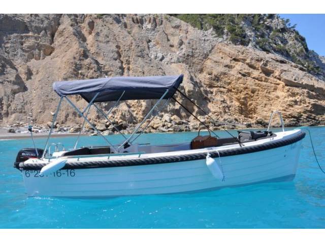 Se alquila un barco sin licencia con motor fueraborda de 15 CV.