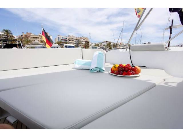 Cabina pequeña Beneteau Antares 8OB, aseo, mucho espacio para tomar el sol con toma de amarre