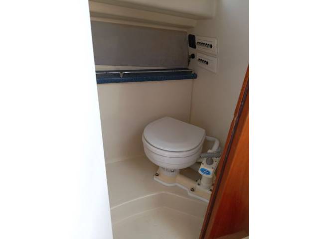 Equipado con aseo, nevera, placa de cocina, pequeña cabina, molinete eléctrico, brújula, Fishfinder 160 blue