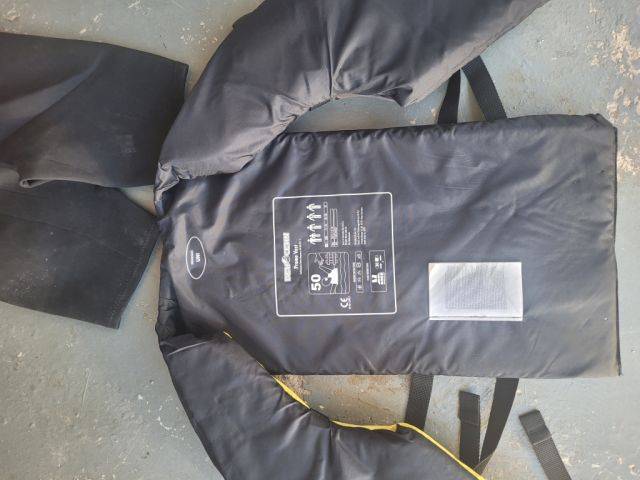 Esquís acuáticos modelo antiguo aprox. 160 cm con chaleco y shorty, talla S, en Cala Murada.