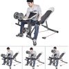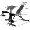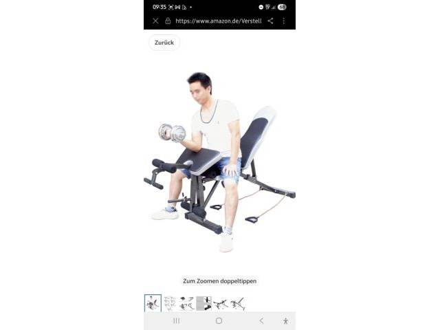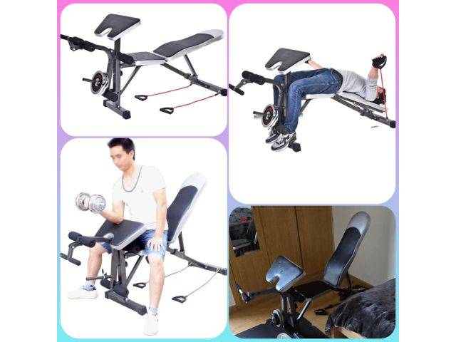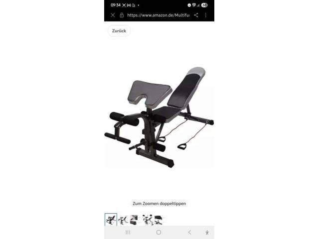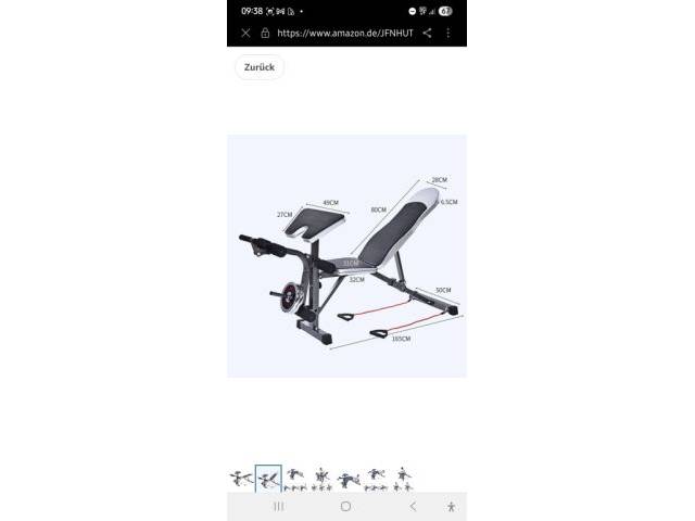 El respaldo se puede ajustar hacia arriba y hacia abajo, y es posible el entrenamiento de todo el cuerpo. El banco ya está desmontado y guardado en una caja de cartón.