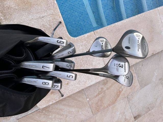 El juego de palos de golf Buffer incluye un set completo de hierros 5, 6, 7, 8 + 9, putter y varias maderas Callaway
