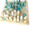 Un bonito juego de ajedrez de alabastro blanco / verde-azulado claro (apariencia similar al mármol) de Volterra/Italia con mesa blanca (madera, pintada en blanco mate), con piezas adicionales para damas, también de alabastro. Altura de la mesa 75 cm (altura estándar), superficie de la mesa 48 x 40 cm, tamaño del tablero 37 x 37 cm, altura de la figura Rey = 7,5 cm.