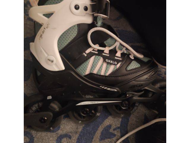 Rollerskats con algunas marcas de uso pero aún funcionan muy bien. Talla 35-38 ajustable, incl. bolsa