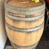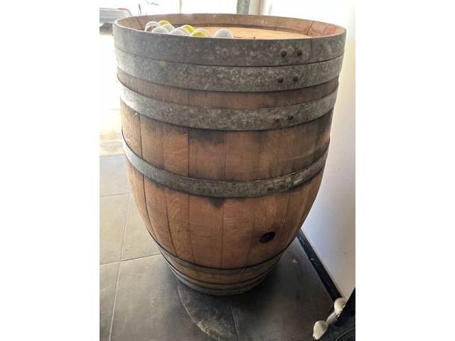 Barril de vino en muy buen estado, con forma totalmente normal. Las deformaciones que se ven en parte en las fotos se deben únicamente a la perspectiva de la cámara. Altura 94 cm Diámetro 57 (arriba, abajo) - 73 (medio) cm