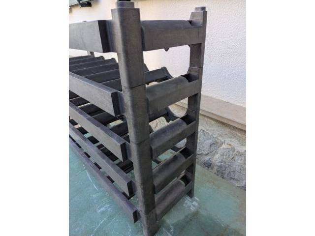 Botellero para 30 botellas. 5 niveles con 6 soportes cada uno. Cada nivel también se puede usar por separado. Buen estado. Ver, comprar y recoger en Cala Pi cerca de Llucmagor. Sin envío. Pago en efectivo al recoger.