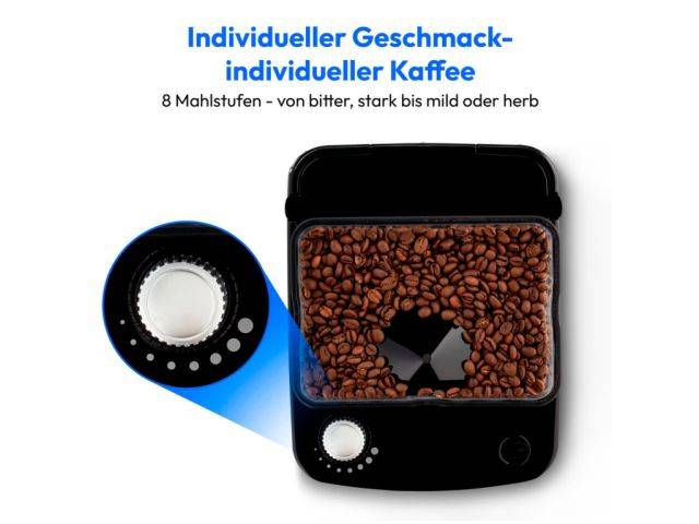 8 niveles de molido, depósito de agua de 1 litro, jarra térmica, función de temporizador, 800 - 1000 vatios
