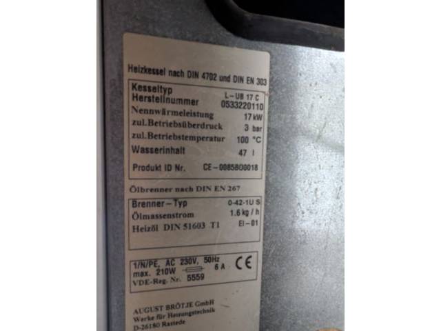 Calefacción de petróleo 17 kW Brötje completa con depósito de combustible y chimenea de acero inoxidable