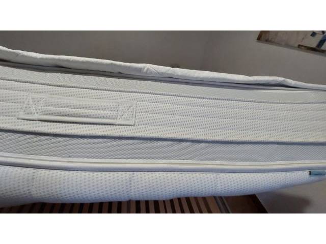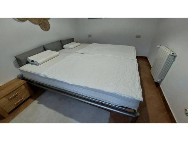 Cama de diseño resistente con somier de lamas y colchones, estructura de acero inoxidable, 2,00 x 2,20 m